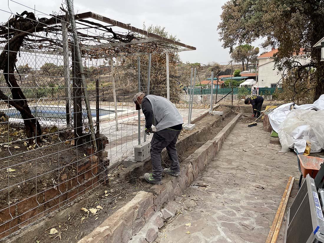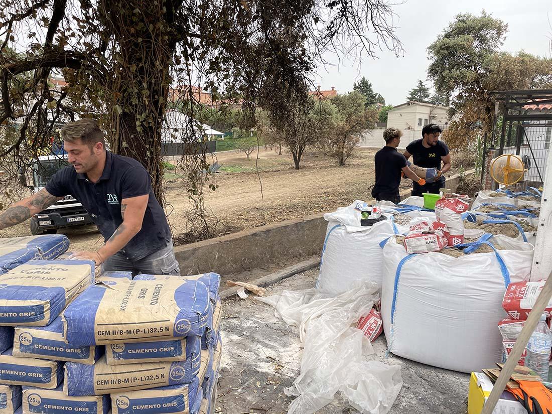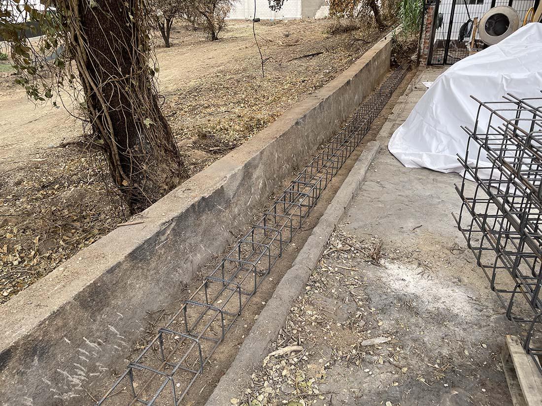 On Sunday, the 17th of August, they will begin the final challenging work at 10:00h. The last section of the hedge up to the gate will remain standing for now because the contractor starts tomorrow, and for the time being, they will not have any fencing. As soon as the wall begins, the fencing will gradually be released to cordon off the last section. So, they will dig holes to pour concrete and install posts. At 14:00h, everything is ready for tomorrow and they will stop. They are exhausted and soaking wet with sweat again because it is still 40°C plus, but they made it. Everything is ready for the contractor and company, and they have saved a lot of money by doing the preparations themselves. Respect!