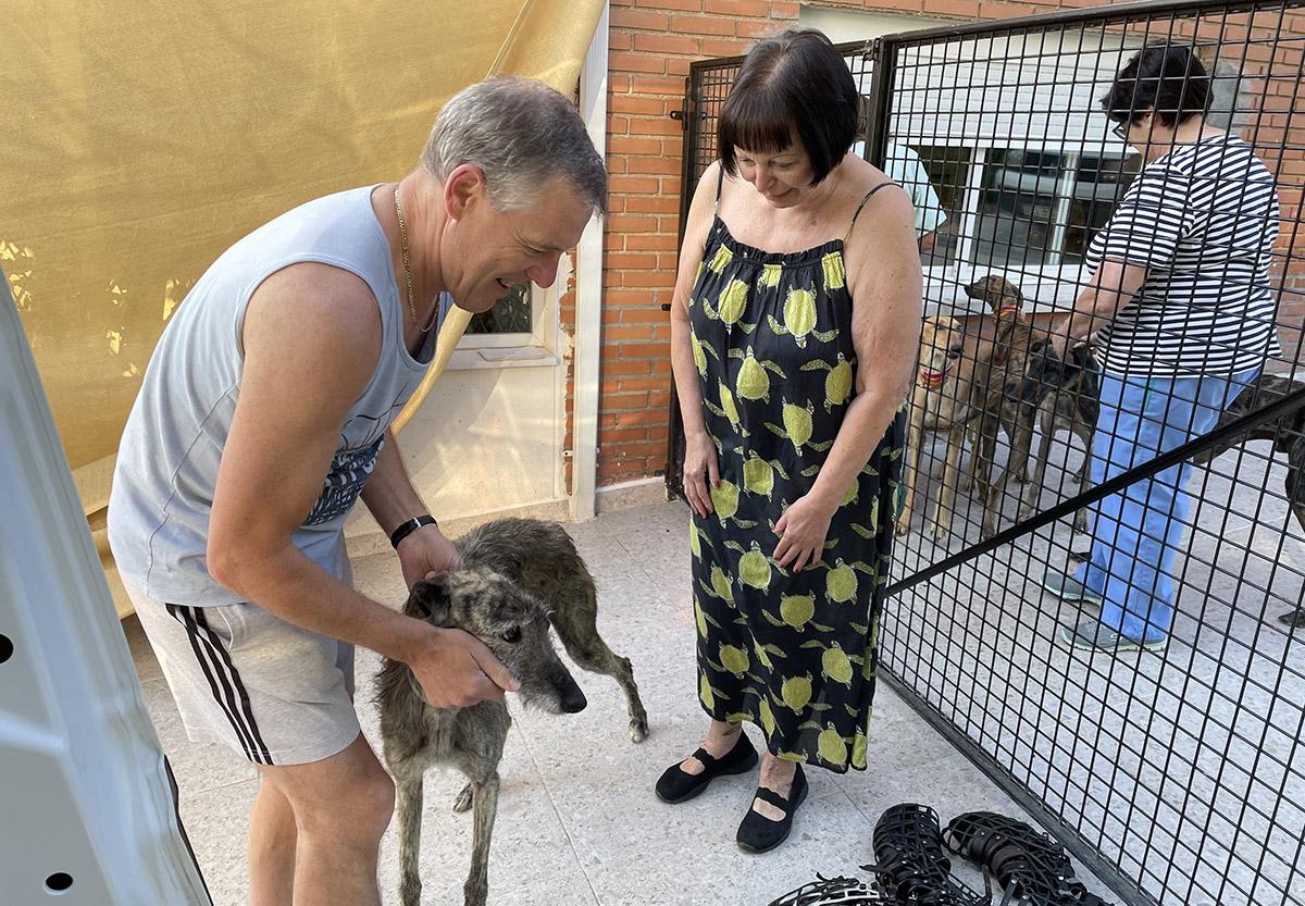 Pendant ce temps, Dirk et Martine "Buffalo" sont arrivés, le mardi 13 juin. Dirk en tant que copilote de Dirk et Martine en tant que ma compagne de voyage afin de rentrer en Belgique avec moi. Le jeudi 15 juin, les Dirk sont partis avec leurs passagers, à 10 heures. Environ 11 heures après leur départ de casa belgica et 8 heures après notre départ vers Barracas, l'aéroport de Madrid, j'ai été déposé à 21 heures à De Pinte et le chauffeur a continué sa route pour déposer Martine à Rosa canina.. Tout comme pour Martine et moi, les « deux Dirk » avaient, après le long trajet et l'arrivée nocturne avec les "élus" à Rosa canina, la "petite" journée d'adoption au programme. qui a eu lieu le vendredi quelques heures après leur arrivée... Programme qui a été perturbé par le fait qu'Amadeus s'est étouffé après l'arrivée et qu’il ne pouvait plus respirer à cause d’un problème aux poumons. Dirk qui venait d'arriver à la maison a été appelé avant même d'avoir vu son lit car Kris Saenen était en train de conduire Amadeus chez le vétérinaire qui habite à quelques minutes de chez nous. Une heure plus tard, il est revenu avec le message qu'Amadeus avait été hospitalisé mais qu’il allait déjà beaucoup mieux.. A 8 heures nous sommes partis pour Rosa canina, pour la journée de l'adoption et quinze minutes plus tard Bert, notre vétérinaire, s’y trouvait aussi, afin de vérifier tous les chiens, comme il a l’habitude de le faire. L’état d’Amadeus s’était amélioré. C'était sérieux, très sérieux mais le véto disait que ça irait.. « Ça ira », a-t-il répété avec insistance avant de partir. J'avais un mauvais pressentiment, mais j'ai lutté pendant toute la journée. Je me suis laissée prendre en photo avec tout le monde, j’ai félicité les adoptants avec leur nouveau colocataire et ensuite on a pris un verre avec les collaborateurs qui étaient tous convaincus qu'Amadeus allait guérir.