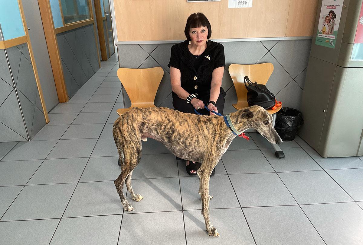 Hier, nous avons reçu le message qu'Astrid avait eu une réaction néfaste après la transfusion sanguine, après quoi elle était devenue léthargique. Tout le monde au cabinet vétérinaire a retenu son souffle. Aujourd'hui nous roulons, à 8h00, avec Henri chez le véto. Il a repris assez de forces pour subir l’intervention chirurgicale compliquée à sa patte arrière. Nous avons très peur de recevoir de mauvaises nouvelles. Dès notre arrivée à Talavera, , le docteur De Frutos emmène Henri au bloc opératoire et son épouse nous amène Astrid. Malgré le fait qu'elle ait l'air épuisée et immensément triste, elle est heureuse de nous voir et pose doucement sa tête sur mes genoux . Je peux à peine retenir mes larmes et je me demande pourquoi nous sommes punis de la sorte. Depuis plus de 25 ans, nous sauvons des lévriers en ne regardant ni au frais, ni aux difficultés et, en guise de remerciement, nous devons remettre les nôtres beaucoup trop tôt.. Rien de plus injuste, en ce qui concerne la récompense de nos bonnes actions. Pendant que Teresa me donne une mise à jour moins que rose sur l'état d' Astrid, Dirk l'emmène faire une petite promenade. Pendant les 5 minutes qu'il est dehors, je demande à nouveau à Teresa de faire tout son possible et j'ajoute que je viendrai la chercher vendredi pour lui donner l'illusion qu'elle rentre chez elle. Ne serait-ce que pour un ou deux jours. J’ajoute encore que je ne voudrais pas qu'elle meure seule et elle me comprend tout à fait. J’assure à Teresa que si nécessaire nous la ramènerons pendant le week-end mais elle doit rentrer à la maison. Peut-être que cela lui redonnera des forces. Malheureusement , jeudi, nous recevons un appel urgent du véto indiquant que les reins d'Astrid sont bloqués, qu'elle a des convulsions et qu'elle souffre terriblement, ils ont tout fait mais rien ne peut l'aider. Parce qu'on ne peut plus y arriver, noyée dans mes larmes, je donne l'ordre de la laisser partir doucement et tendrement