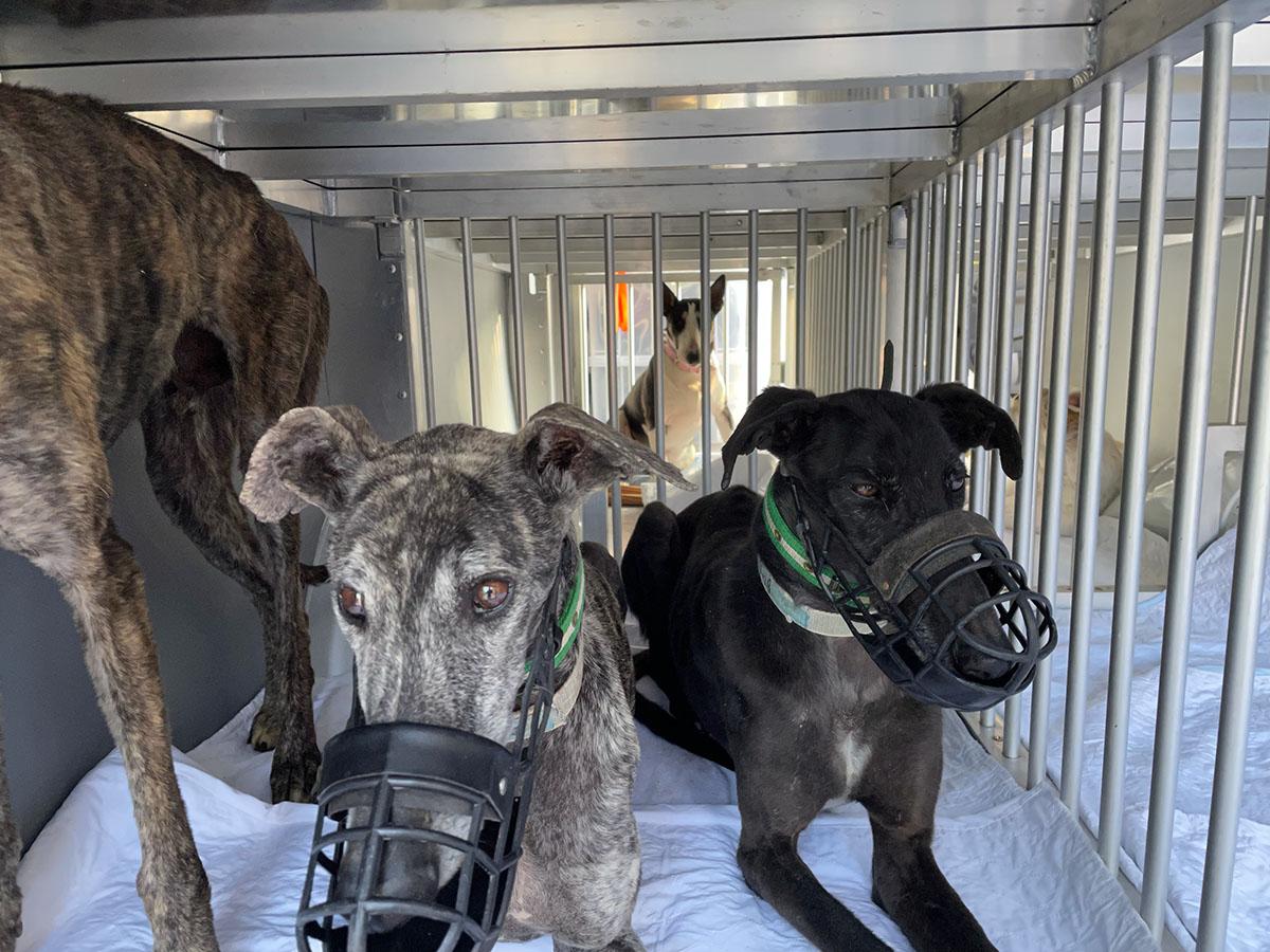 Alors que ce matin, Hyppolythe donnait son sang à Astrid, Marie-Carmen nous a fait savoir, pendant que nous attendions, que 2 chiots avaient été retrouvés dans les champs et nous demandait quand nous serions de retour à la maison.. Quelques heures plus tard nous étions de retour à Casa Belgica avec notre donneur. Marie-Carmen arrivait une demi-heure plus tard avec les 2 mini galgos trouvés, pour qui j'avais entre temps trouvé les prénoms Honoré et Honorine car on est encore toujours en 2023, donc les prénoms de tous nos enfants à problèmes commencent par H et à partir de 2024 avec le « I » d’Isidore... Quoi qu'il en soit, après la venue et l'installation des chiots, j'ai continué à m'inquiéter pour Astrid et j'espérais que le sang d' Hyppolythe avait ce qu'il fallait pour la tirer d’affaire. Depuis son hospitalisation qui datait d’avant notre départ pour la Belgique, les mises à jour quotidiennes de notre véto, n’avaient pas été très positives. Les messages évoluaient de mauvais à très mauvais, un peu mieux, forte fièvre et encore pire etc.. Le plus grave était que les saignements ne s'arrêtaient pas. ils diminuaient, s'arrêtaient parfois pendant quelques heures mais la pauvre se remettait toujours à saigner. Quand je l'ai revue la première fois, mon cœur s'est brisé. Elle était déjà si fragile et timide et peu sûre d'elle, à cause de sa vie antérieure, mais maintenant elle était totalement perdue et désemparée, lorsque le vétérinaire nous l'a amenée. Elle était couverte de sang et avait des gouttes sanglantes qui lui pendaient au nez... Quand elle nous a vus, elle était heureuse à sa manière et elle s'est collée contre nous mais ne savait pas ce qui se passait quand nous sommes partis sans elle. Soit dit en passant, nous avions également le cœur brisé du fait de devoir la laisser derrière nous.
