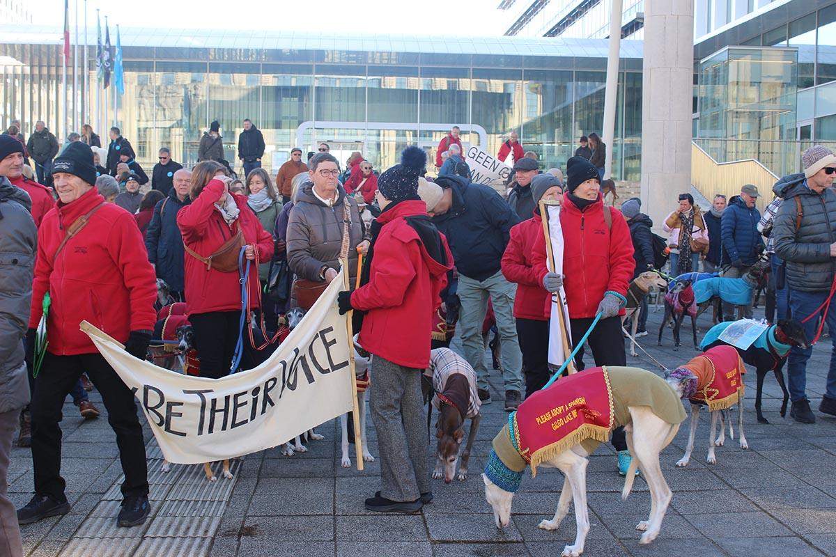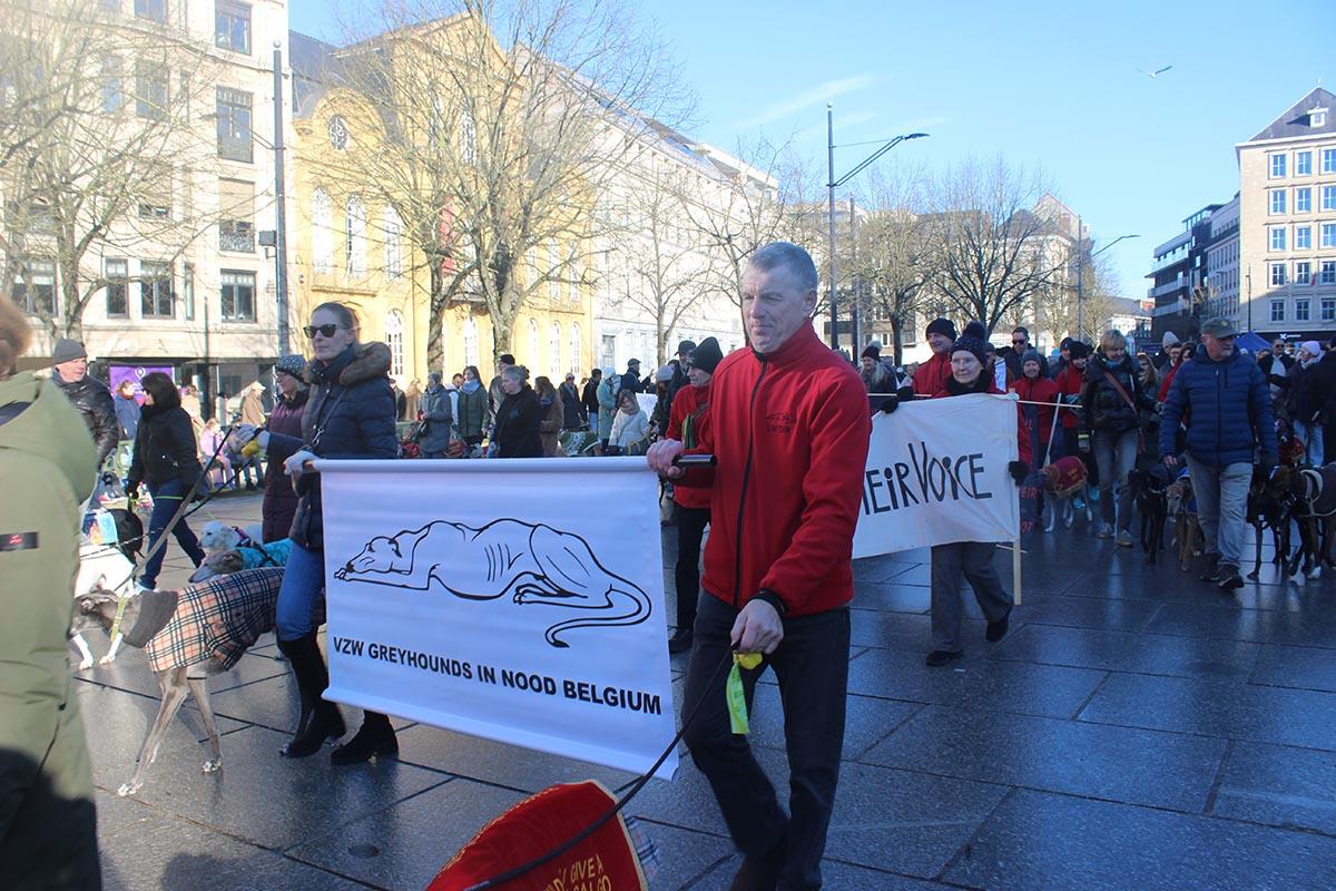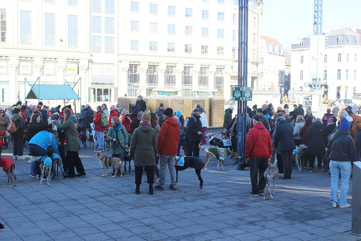 Manifestatie in Leuven op 1 februari 2026 naar aanleiding van wereld galgo dag